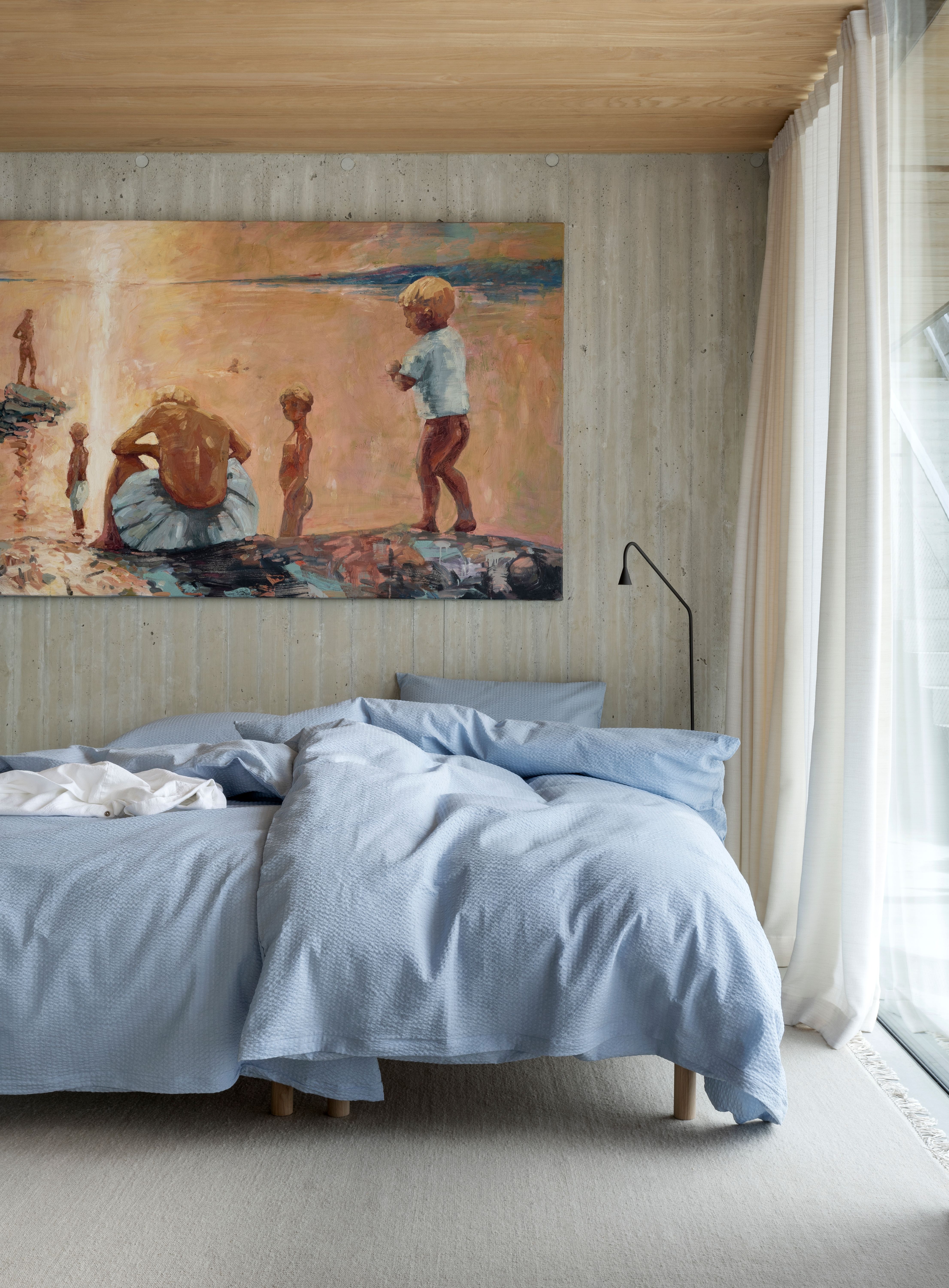 Varøystrand drar paralleller til naturens palett og strukturer. Det mørkeblå havet, nattehimmelen og stødige trær. Det gir mening at det er nettopp disse fargene vi skal hente inn på soverommet og lulle oss inn i på friske og kalde høst- og vinterkvelder. - Det hele blir veldig i pakt med naturen. Sengetøyskolleksjonen er fin mot andre naturelementer, men også mot kontraster som marmor og metaller, avslutter Varøystrand.