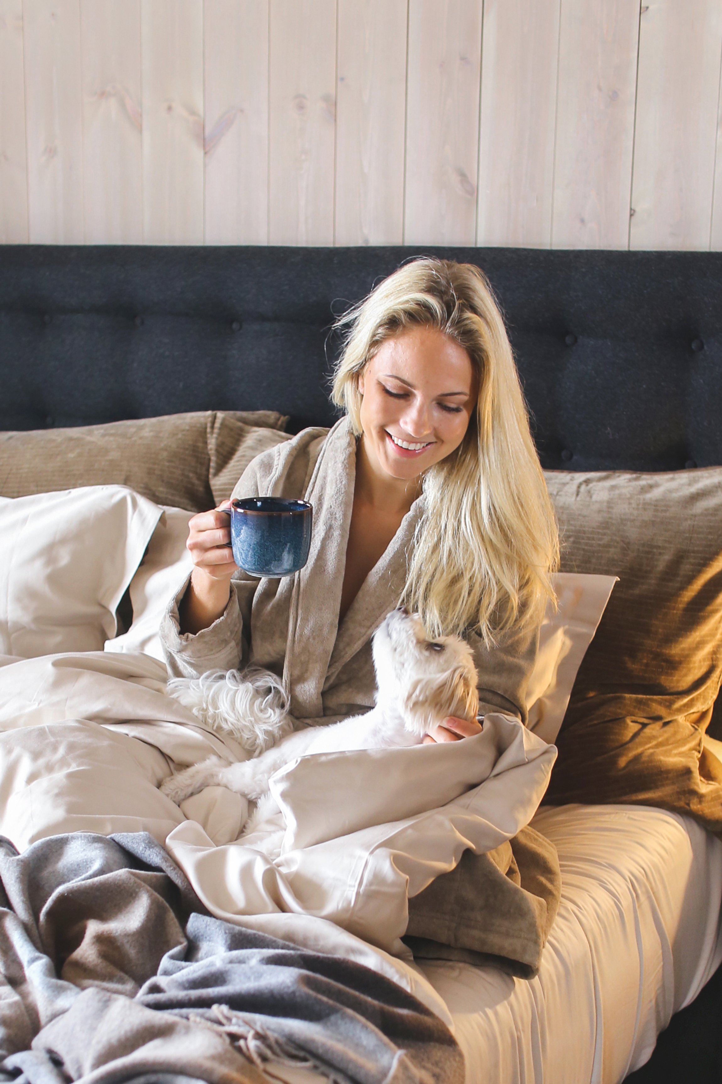 Jeg er en skikkelig natteravn og kan egentlig boble over av ideer og kreativitet på kveldstid. Derfor har jeg, for søvnens skyld, forsøkt å innarbeide rutiner som å ikke sjekke mobil og jobb etter klokken ni, og heller koble av med å tenne stearinlys rundt meg, skifte til kosetøy og lytte til podcast eller se på en serie. Jeg er også veldig takknemlig for at hunden min trenger kveldstur slik at også jeg får luftet meg litt før jeg legger meg.