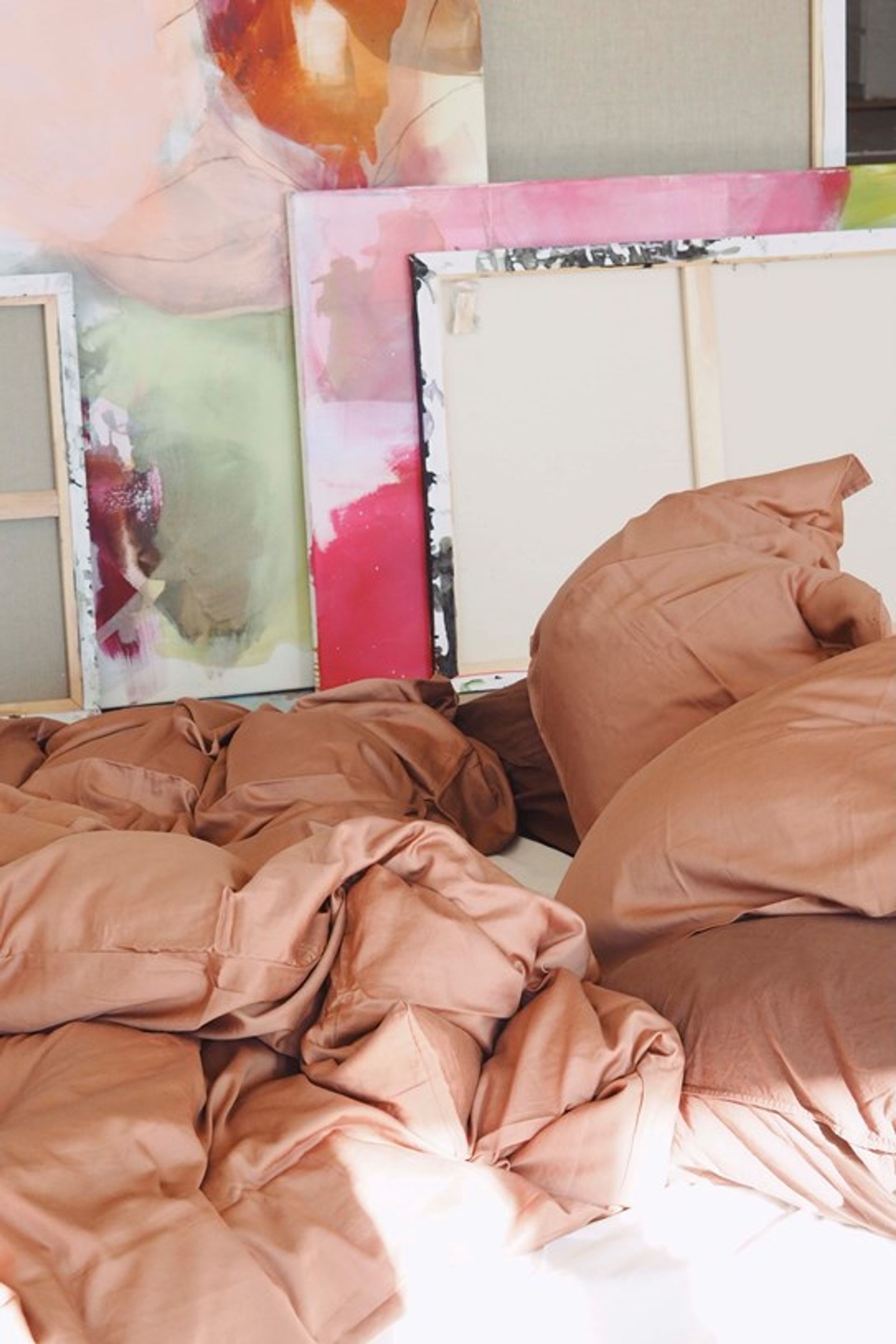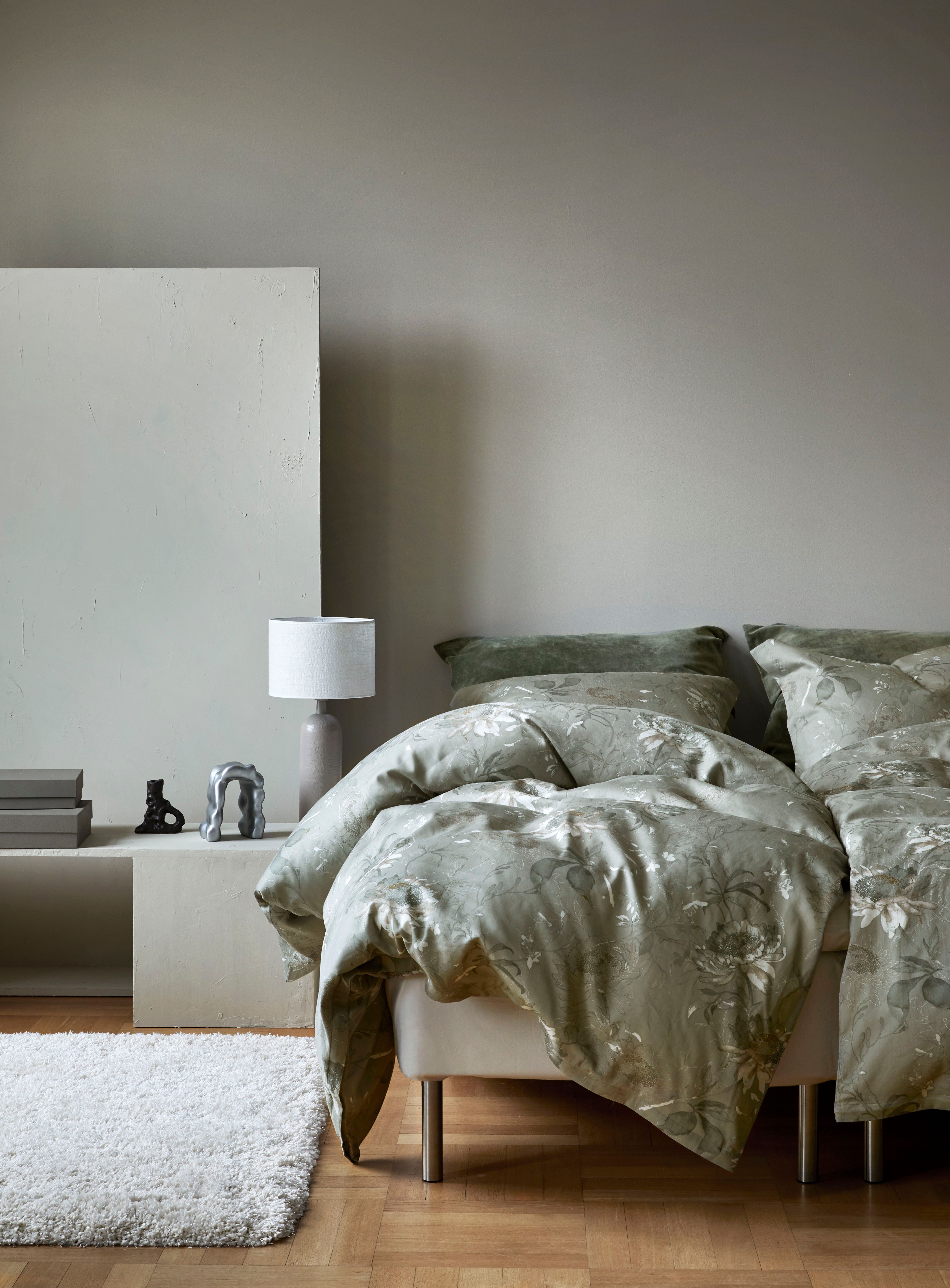 Overgangen fra sommer til høst - Tenk deg en sommer på hell. Naturens farger som blir varmere og dusere. Solbrun hud og lune sensommerkvelder. Dette har vært inspirasjonen til kolleksjonen som har fått navnet «Dus estetikk». Fargene, mønstrene og materialene i sengesettene er valgt med omhu – for å gjøre overgangen fra sommer til høst så myk og behagelig som mulig.