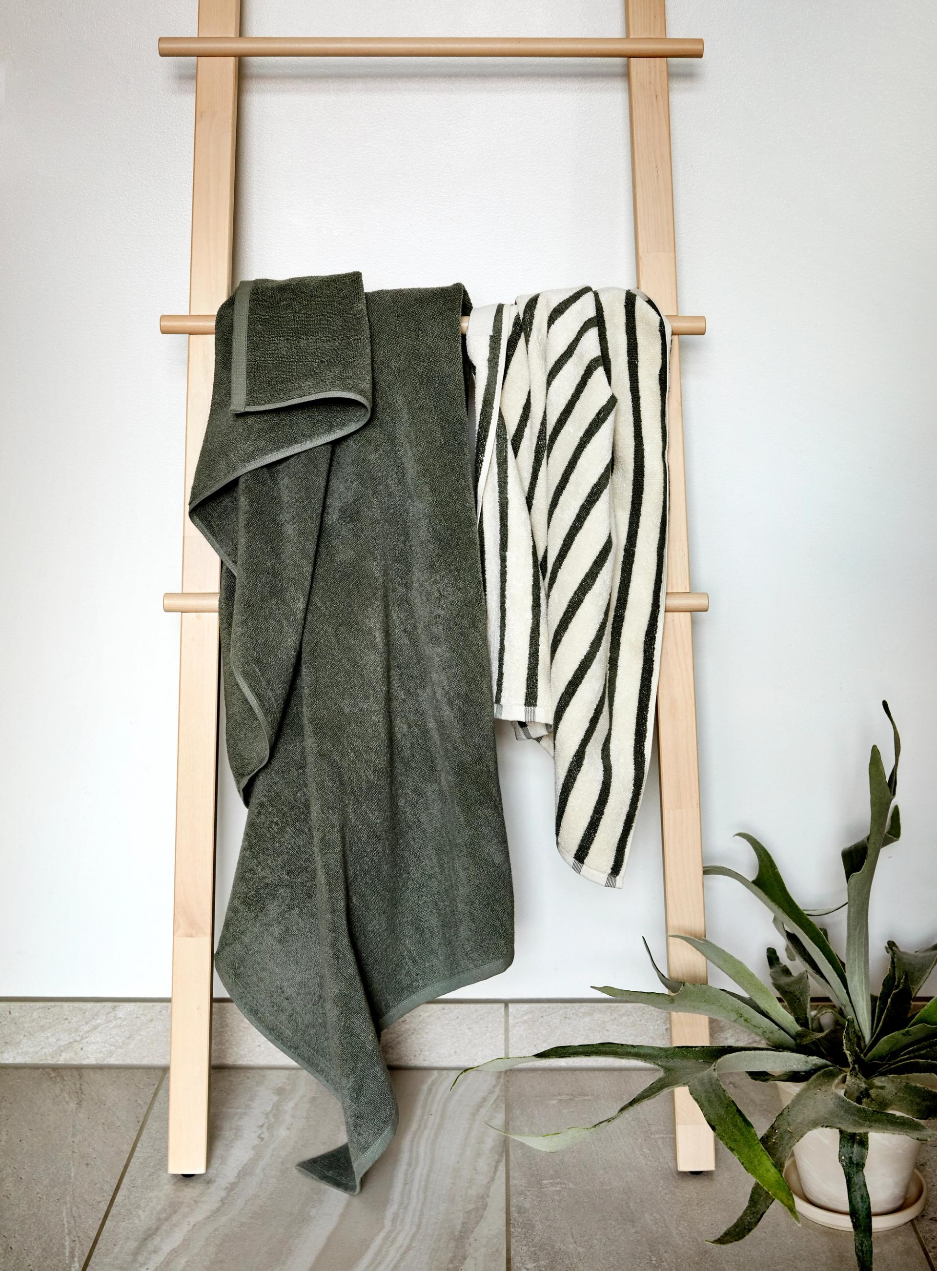 Det er ikke uten grunn at håndklærne våre er en gavefavoritt. Myk bomullsfrotté er behagelig mot huden og skånsom mot miljøet. I jordfarger som oliven, oker og terrakotta passer de inn i de fleste baderom.